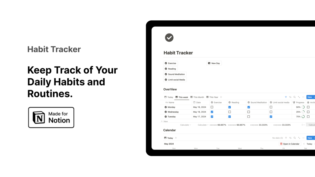 Use this Notion template to track daily habits, monitor progress, and cultivate positive routines.
